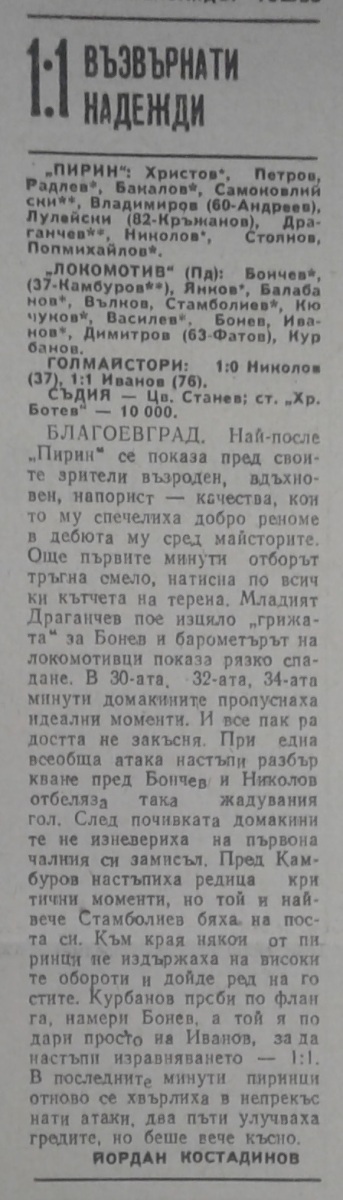 «Пирин» Благоевград - «Локомотив» Пловдив - 1:1