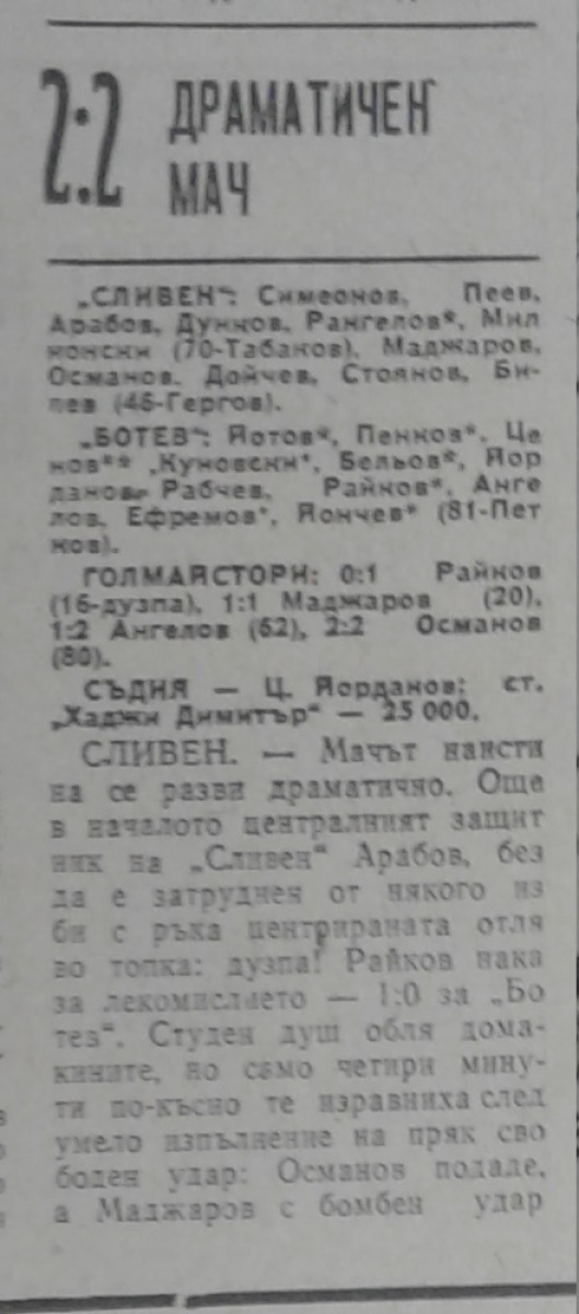 АФД Сливен - «Ботев» Враца - 2:2