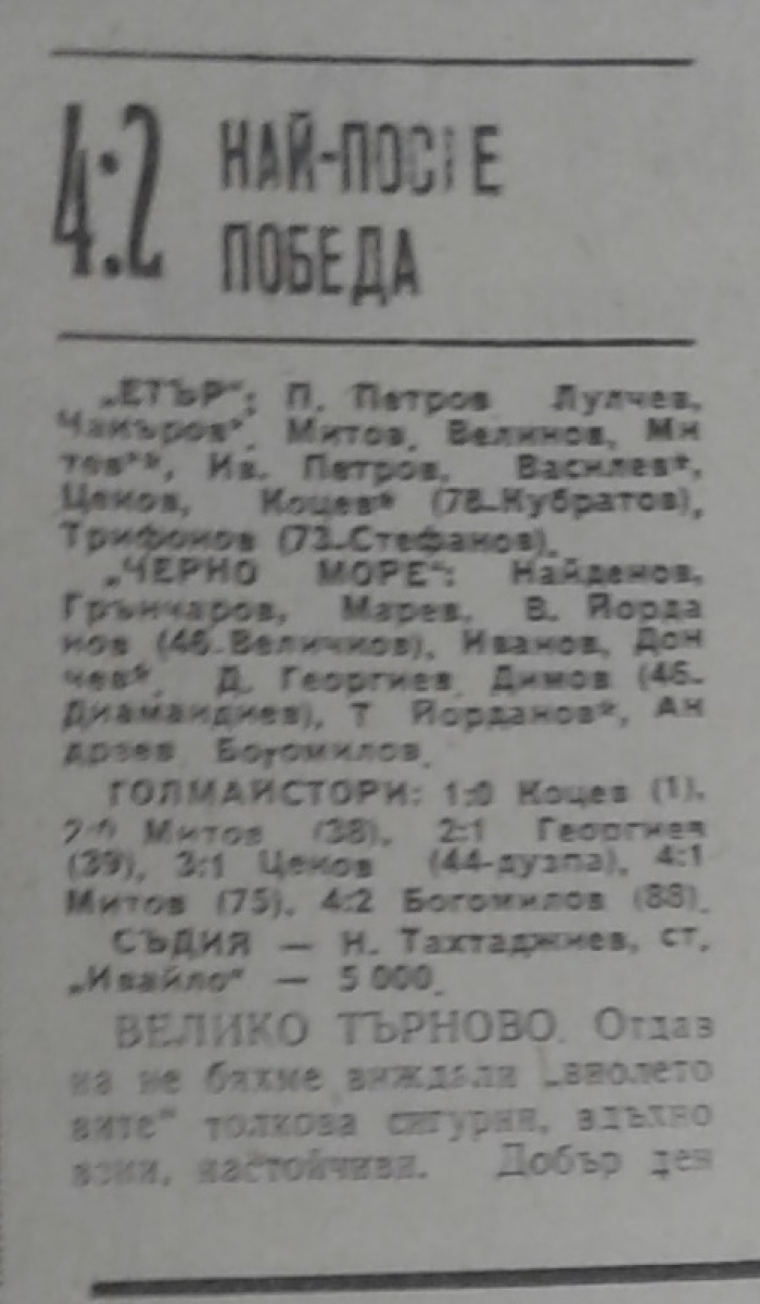 «Этыр» Велико-Тырново - «Черно море» Варна - 4:2