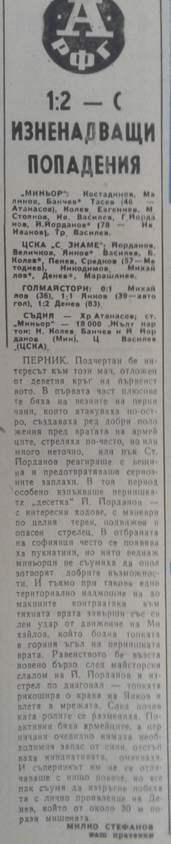 «Минёр» Перник - «ЦСКА Септемврийско Знаме» София - 1:2