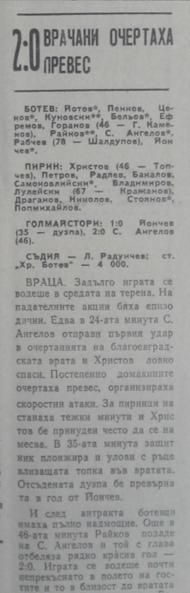 «Ботев» Враца - «Пирин» Благоевград - 2:0