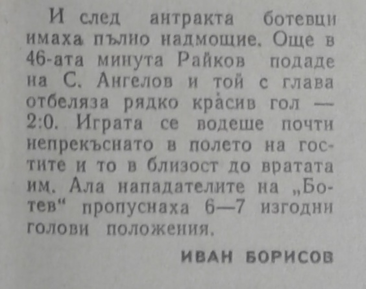 Сашо Ангелов (Ботев Враца) провёл свой 150-й матч в А РФГ.