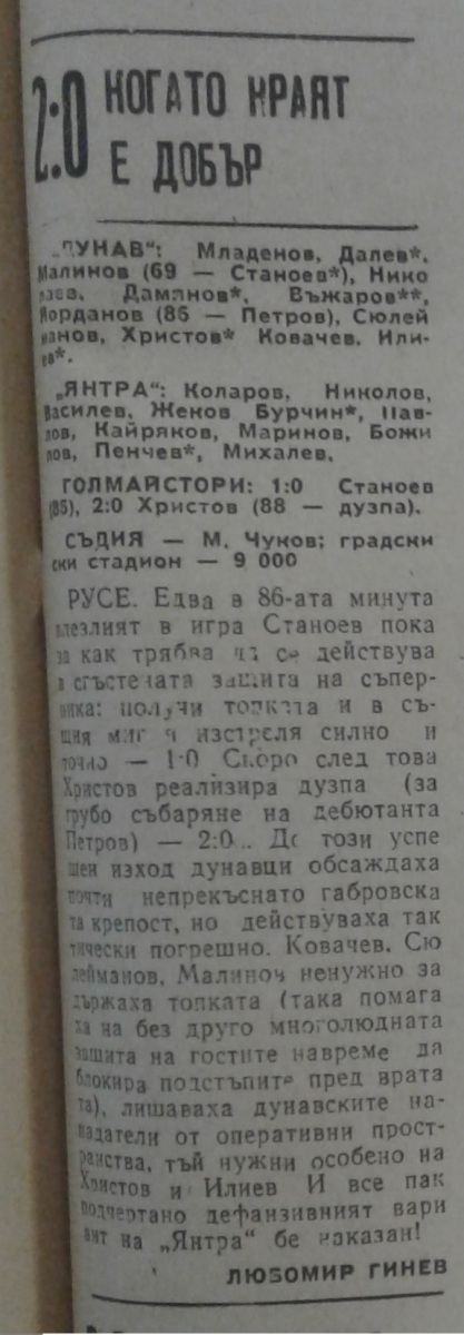 «Дунав» Русе - «Янтра» Габрово - 2:0