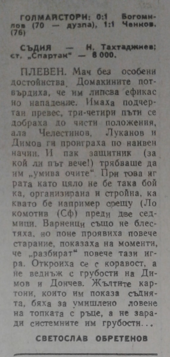 «Спартак» Плевен - «Черно море» Варна - 1:1