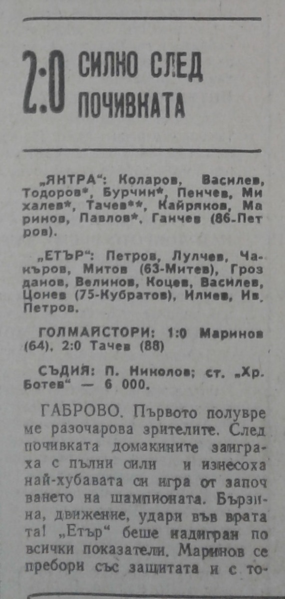 «Янтра» Габрово - «Этыр» Велико-Тырново - 2:0