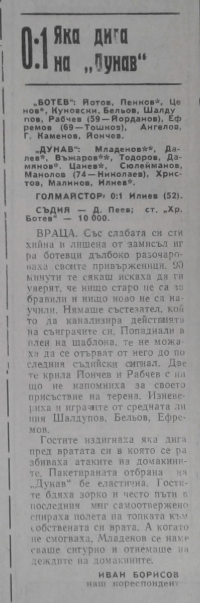 «Ботев» Враца - «Дунав» Русе - 0:1