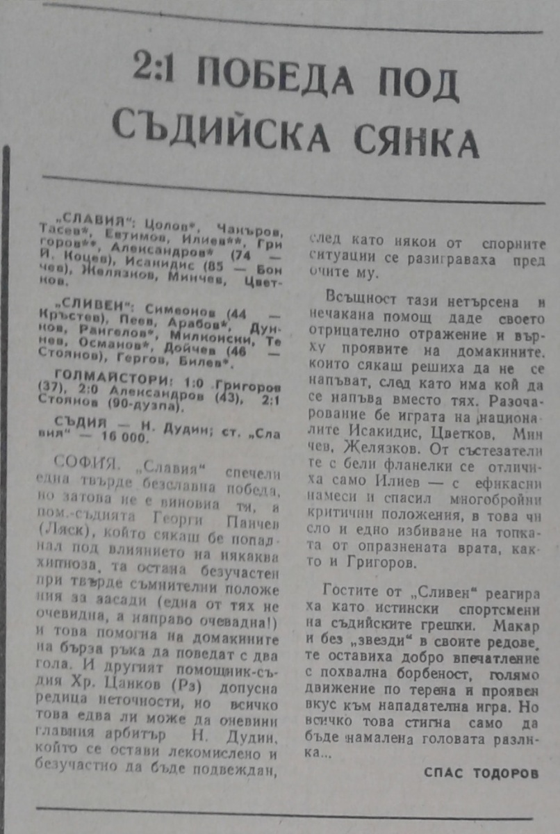 «Славия» София - АФД Сливен - 2:1