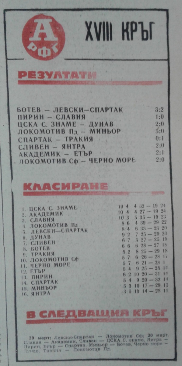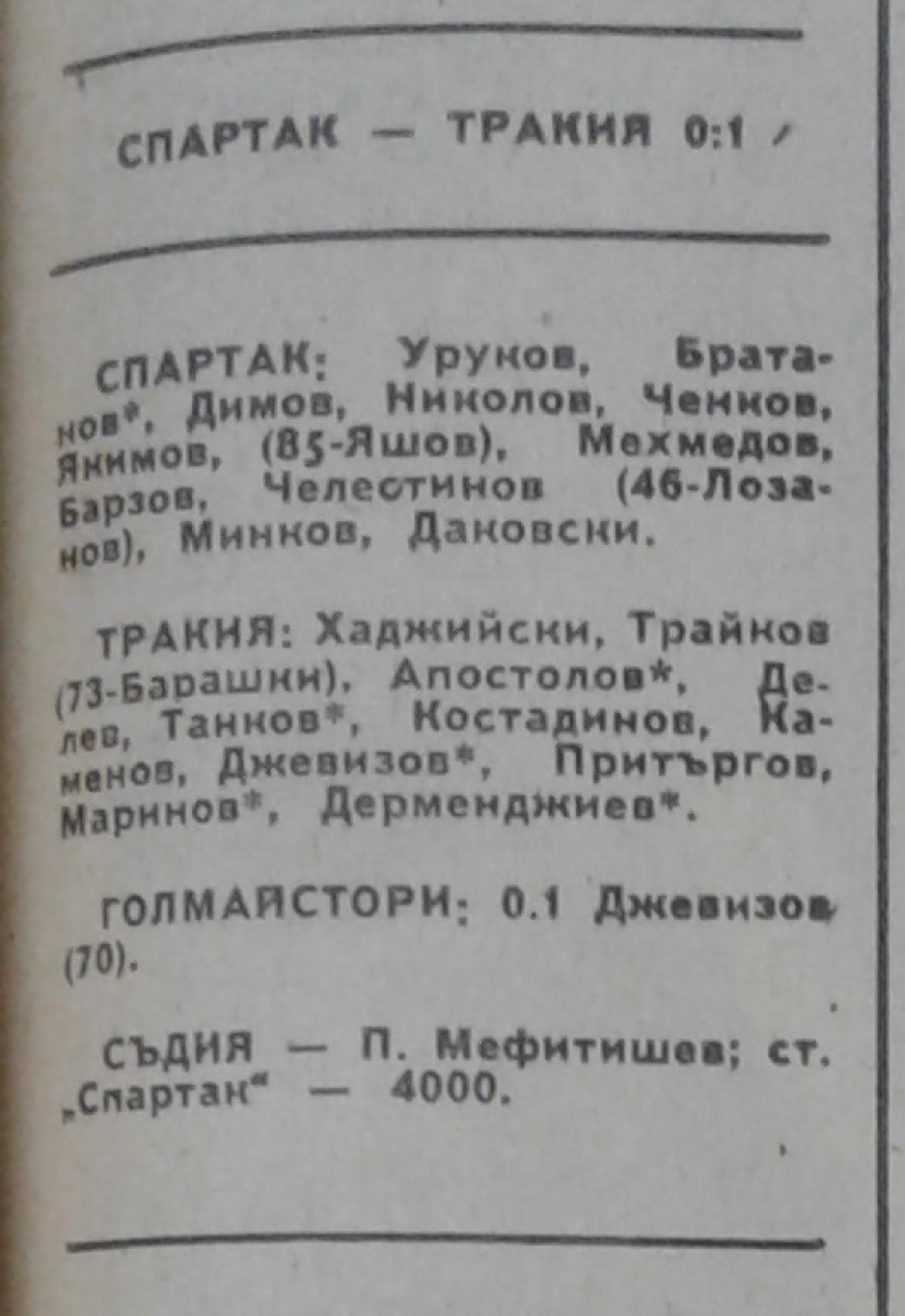 Вангел Делев (Тракия Пловдив) сыграл свой 200-й матч в А РФГ. Илия Баришки (Левски-Спартак) дебютировал в А РФГ (из юнош. команды).