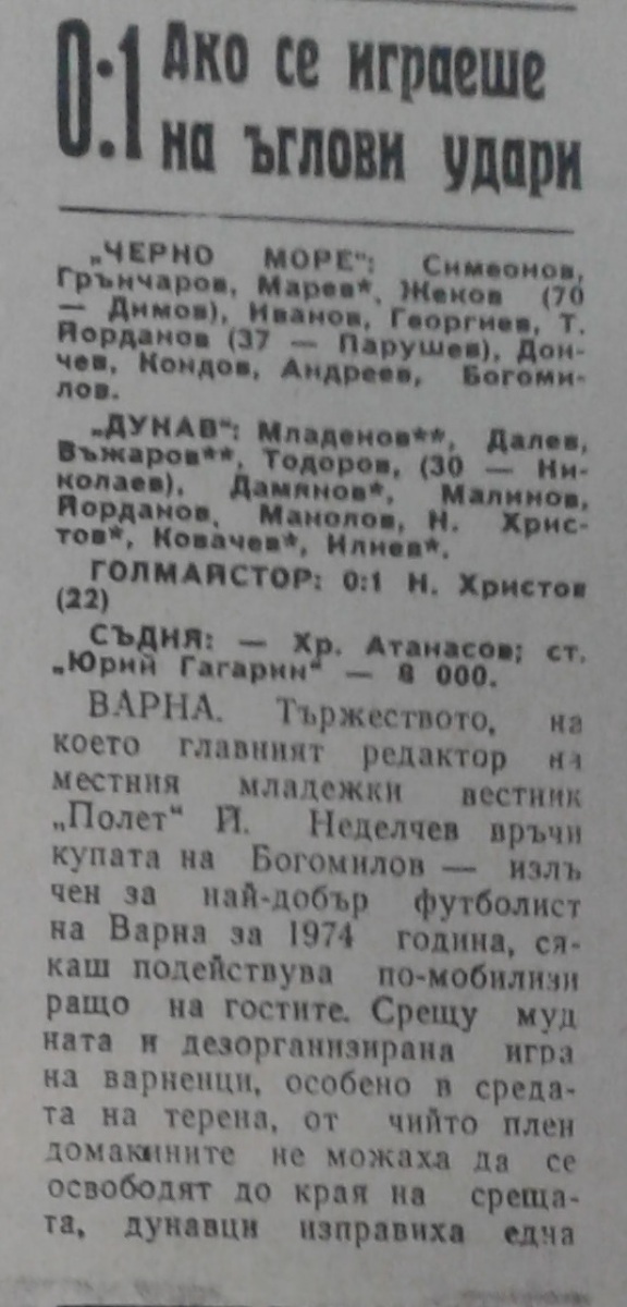«Черно море» Варна - «Дунав» Русе - 0:1
