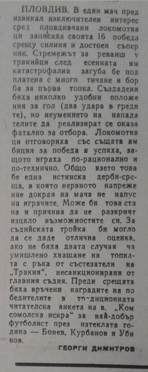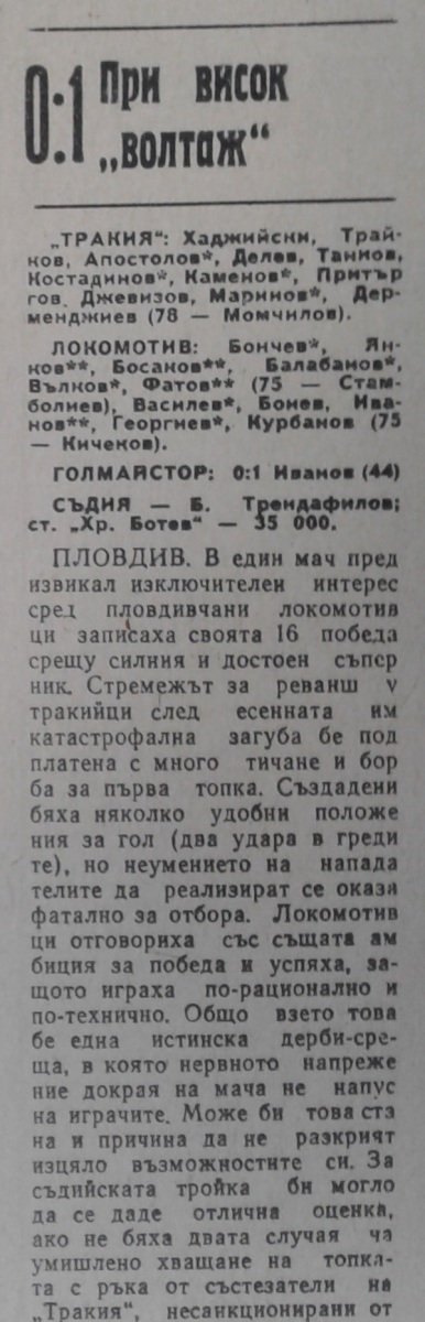 «Тракия» Пловдив - «Локомотив» Пловдив - 0:1