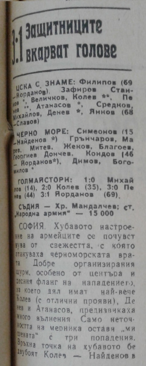 «ЦСКА Септемврийско Знаме» София - «Черно море» Варна - 3:1