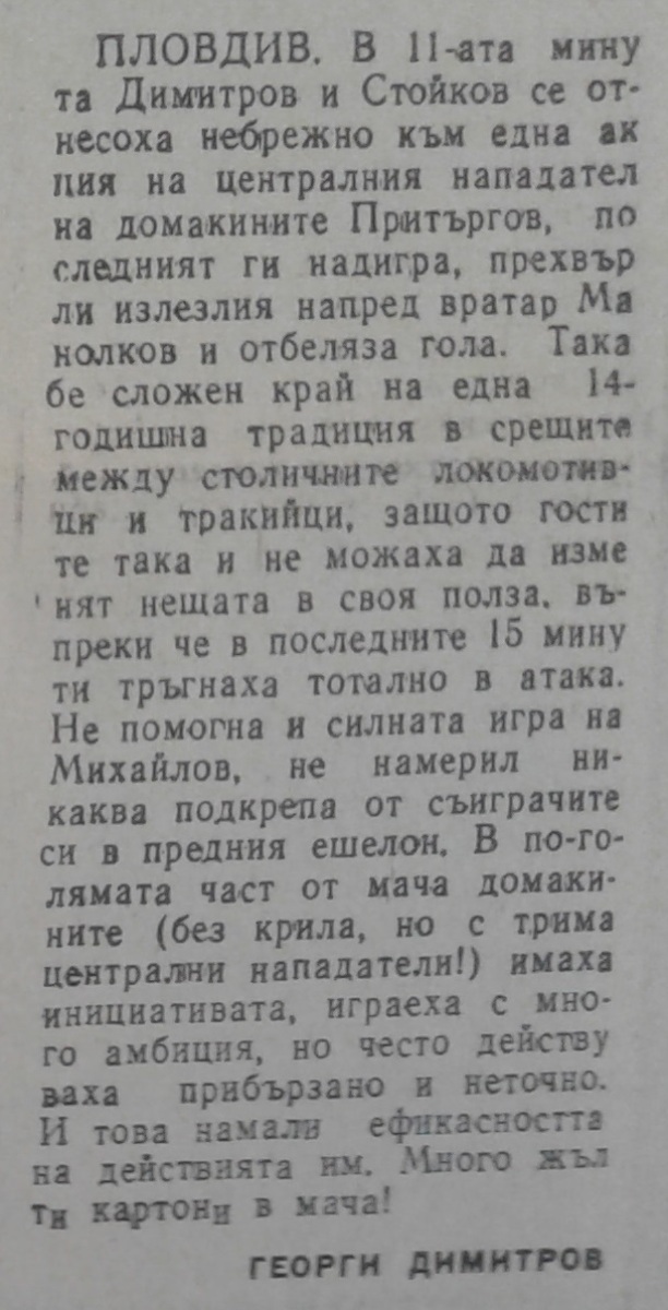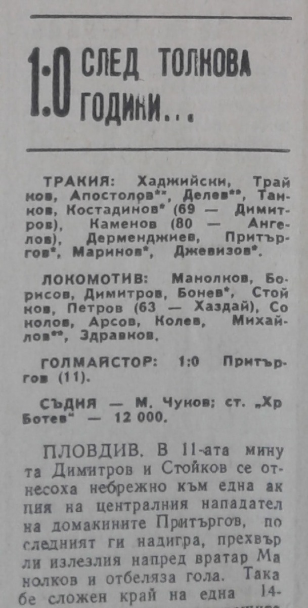 «Тракия» Пловдив - «Локомотив» София - 1:0