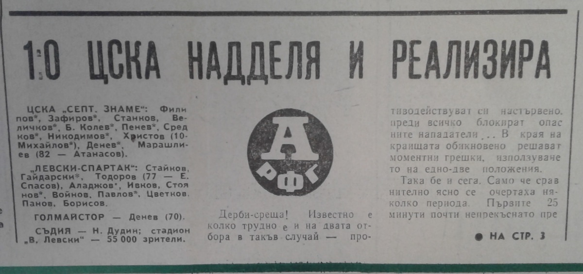 «ЦСКА Септемврийско Знаме» София - «Левски-Спартак» София - 1:0
