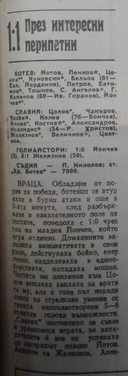 «Ботев» Враца - «Славия» София - 1:1