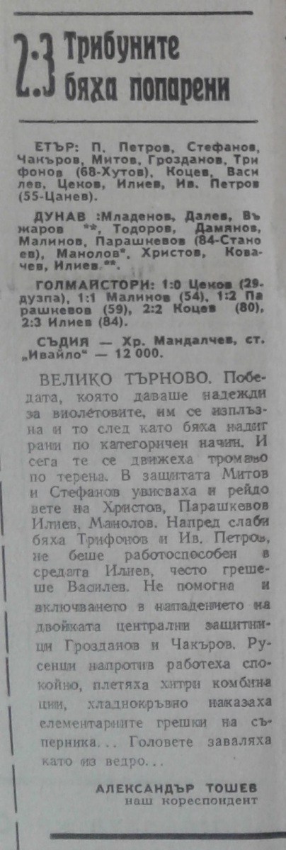 «Этыр» Велико-Тырново - «Дунав» Русе - 1:2