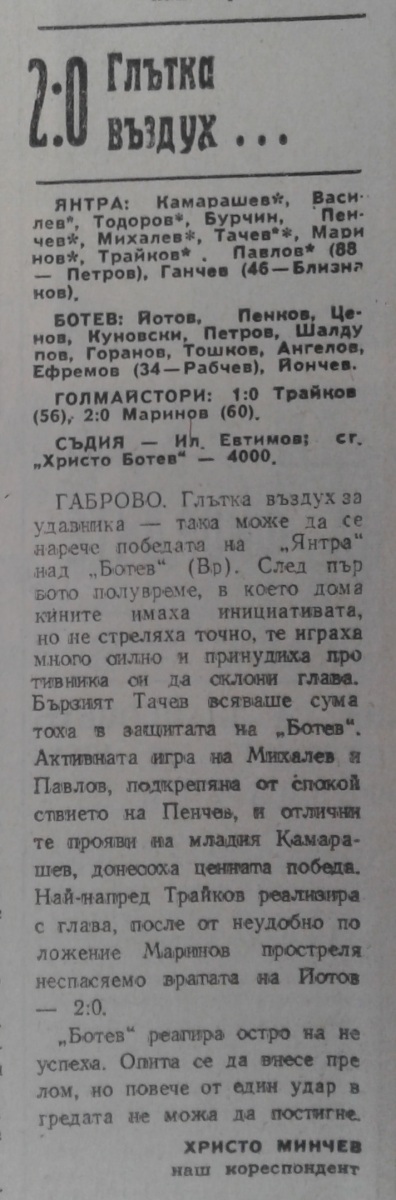 «Янтра» Габрово - «Ботев» Враца - 2:0