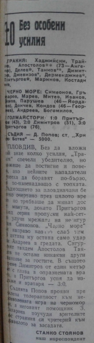 «Тракия» Пловдив - «Черно море» Варна - 3:0