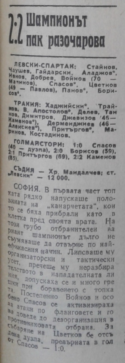 «Левски-Спартак» София - «Тракия» Пловдив - 2:2