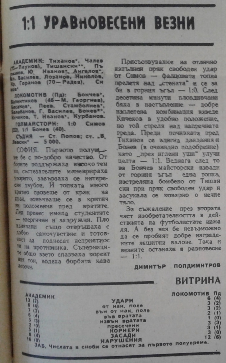 «Академик» София - «Локомотив» Пловдив - 1:1