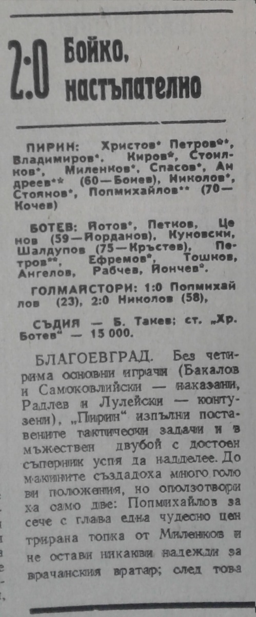 «Пирин» Благоевград - «Ботев» Враца - 2:0