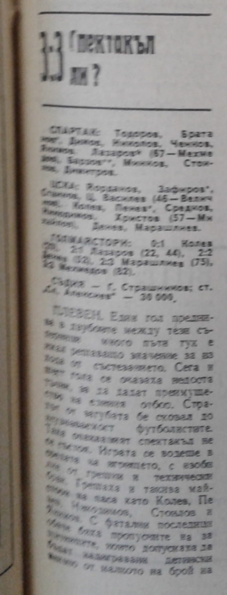 «Спартак» Плевен - «ЦСКА Септемврийско Знаме» София - 3:3
