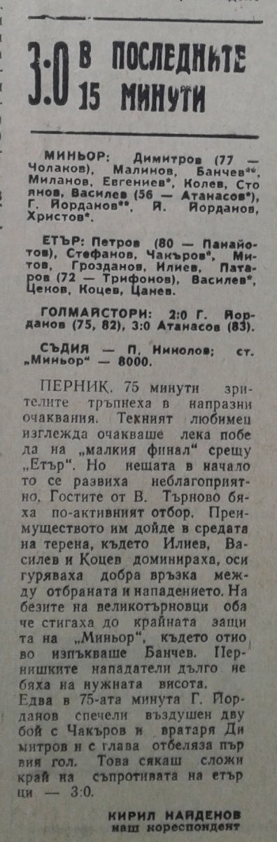 «Минёр» Перник - «Этыр» Велико-Тырново - 3:0