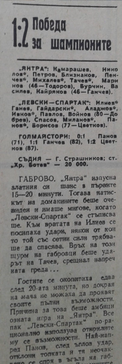 «Янтра» Габрово - «Левски-Спартак» София - 1:2