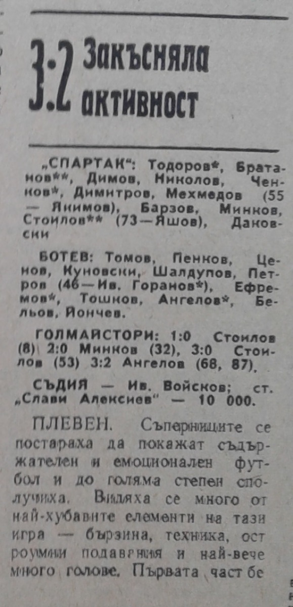 «Спартак» Плевен - «Ботев» Враца - 3:2
