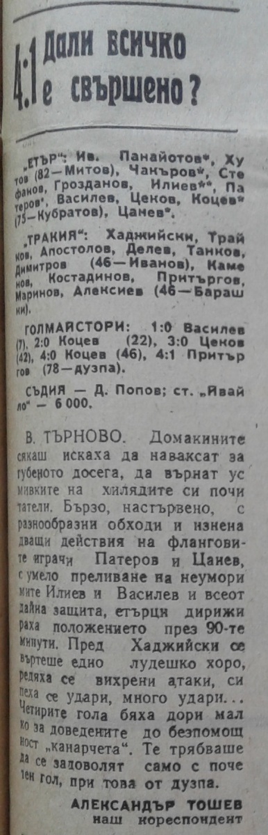 «Этыр» Велико-Тырново - «Тракия» Пловдив - 4:1