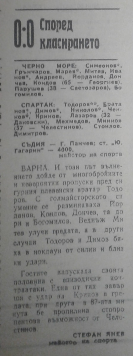 «Черно море» Варна - «Спартак» Плевен - 0:0
