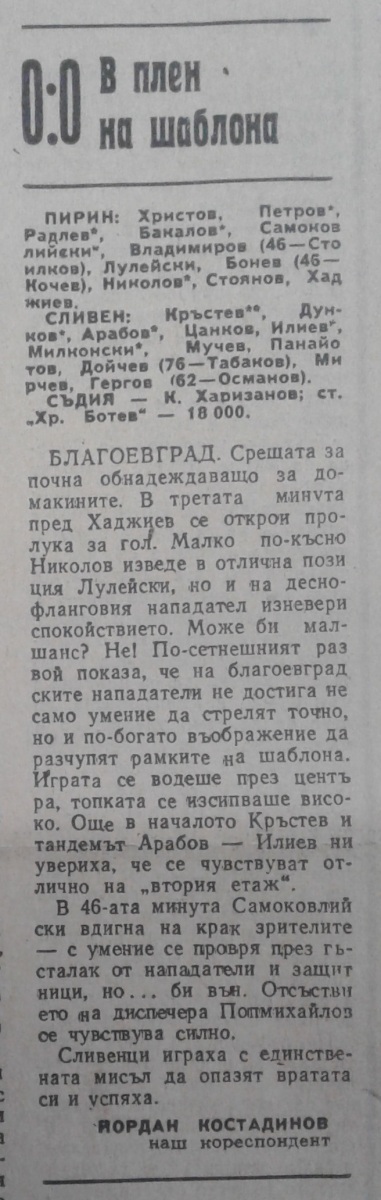 «Пирин» Благоевград - АФД Сливен - 0:0