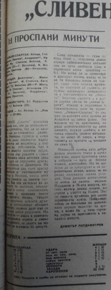 «Левски-Спартак» София - «Минёр» Перник - 1:1