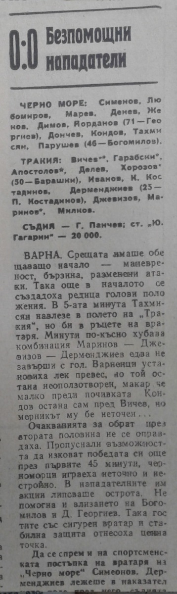 «Черно море» Варна - «Тракия» Пловдив - 0:0