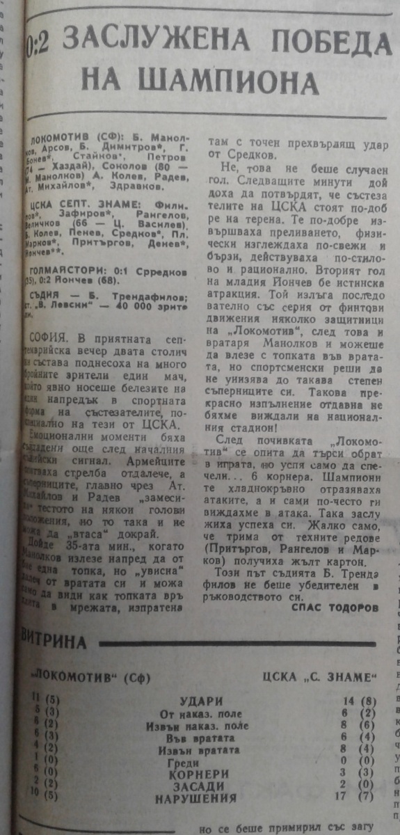 «Локомотив» София - «ЦСКА Септемврийско Знаме» София - 0:2