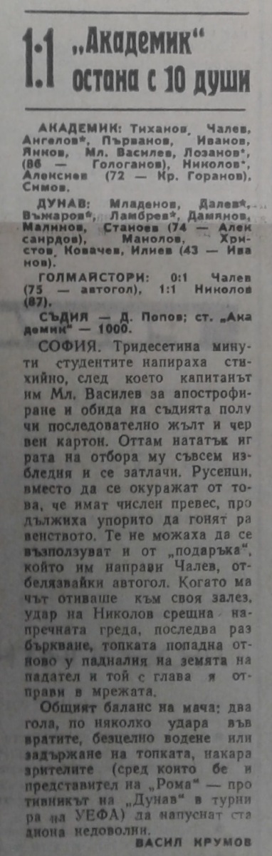 Богомил Симов (Академик София) провёл свой 150-й матч в А РФГ.