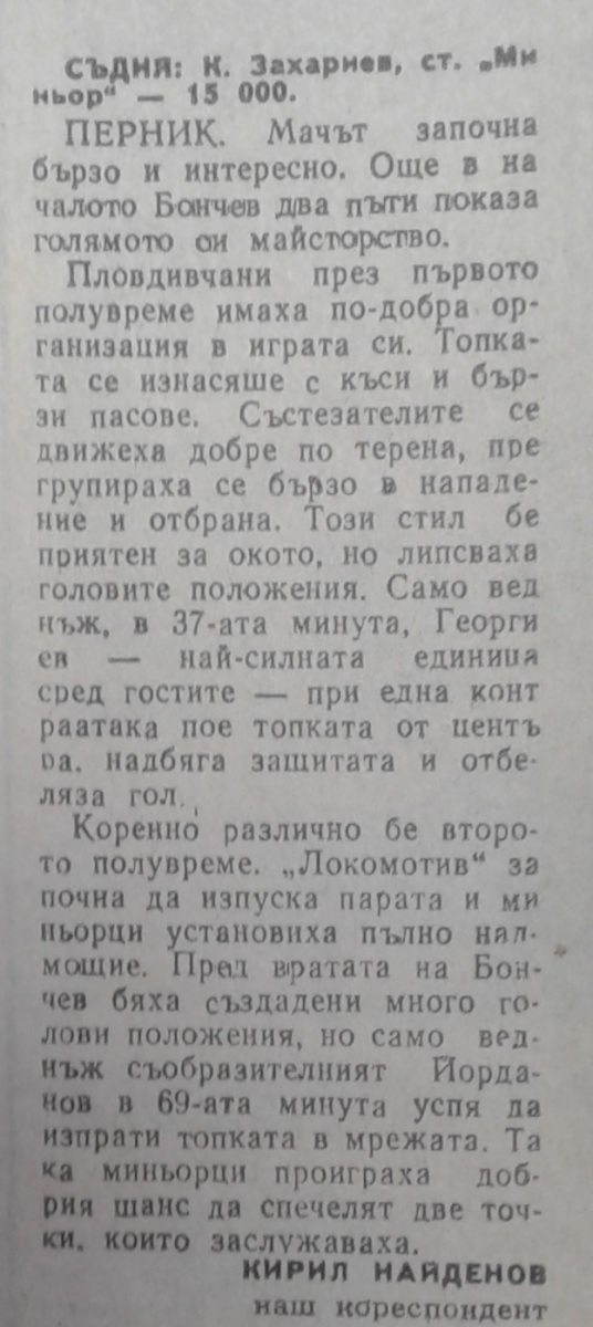 Евлоги Банчев (Миньор) провёл свой 150-й матч в А РФГ.