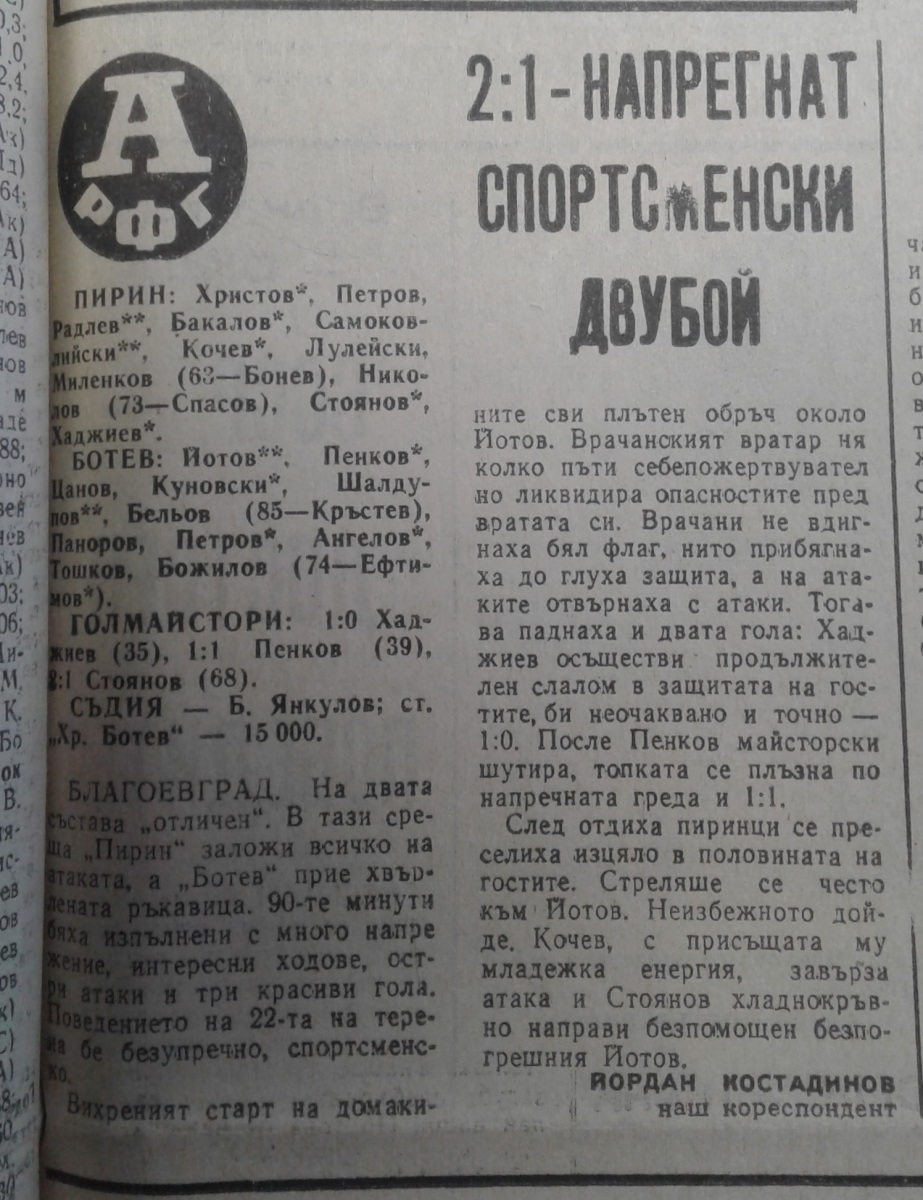 «Пирин» Благоевград - «Ботев» Враца - 2:1
