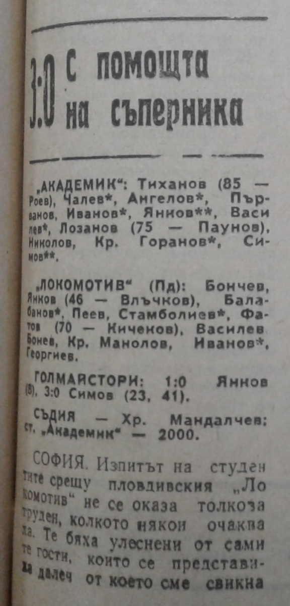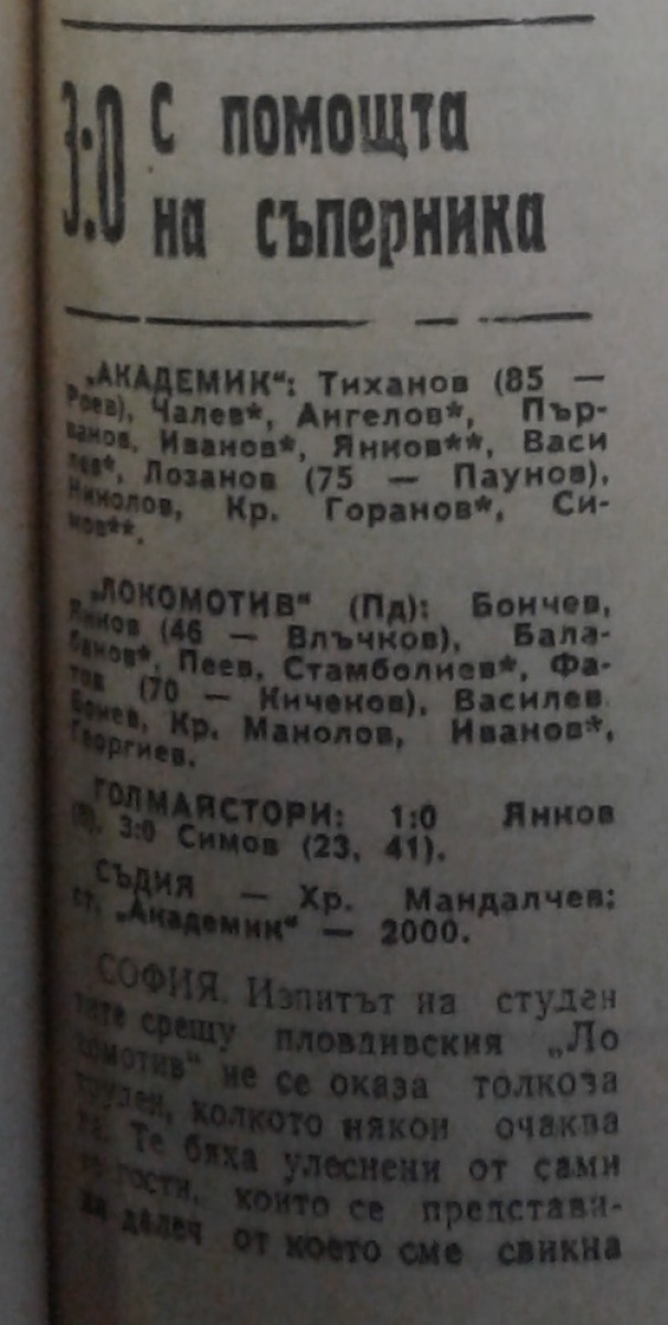 «Академик» София - «Локомотив» Пловдив - 3:0