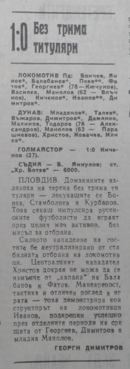 «Локомотив» Пловдив - «Дунав» Русе - 1:0