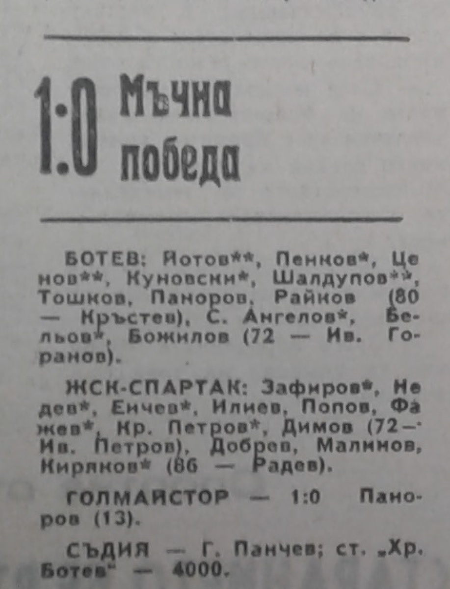 «Ботев» Враца - «ЖСК-Спартак» Варна - 1:0