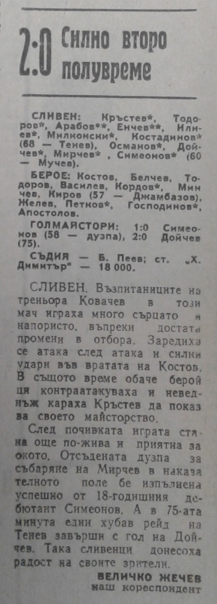 АФД Сливен - «Берое» Стара-Загора - 2:0