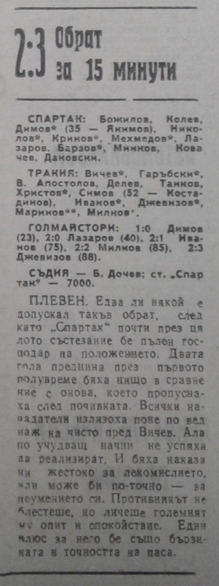 «Спартак» Плевен - «Тракия» Пловдив - 2:3