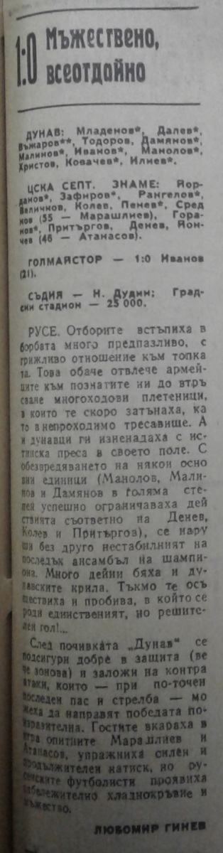 «Дунав» Русе - «ЦСКА Септемврийско Знаме» София - 1:0