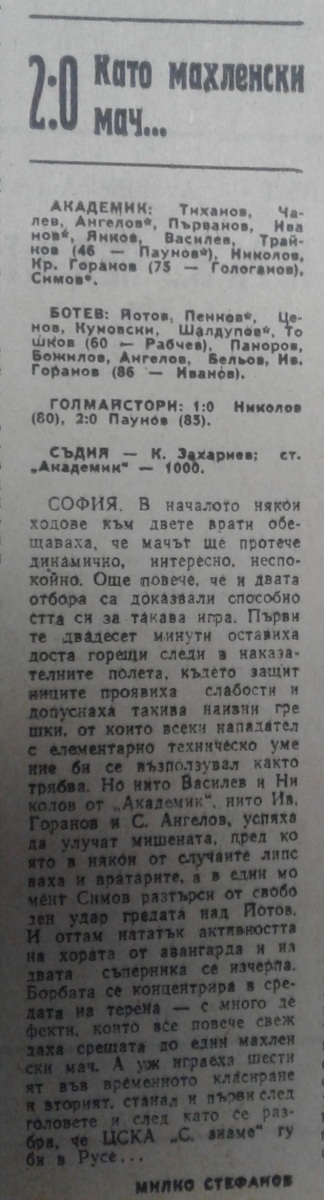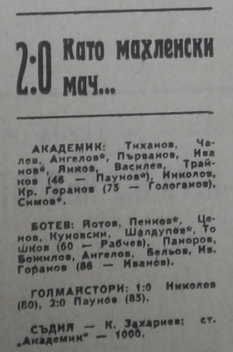Младен Василев (Академик София) провёл свой 200-й матч в А РФГ.