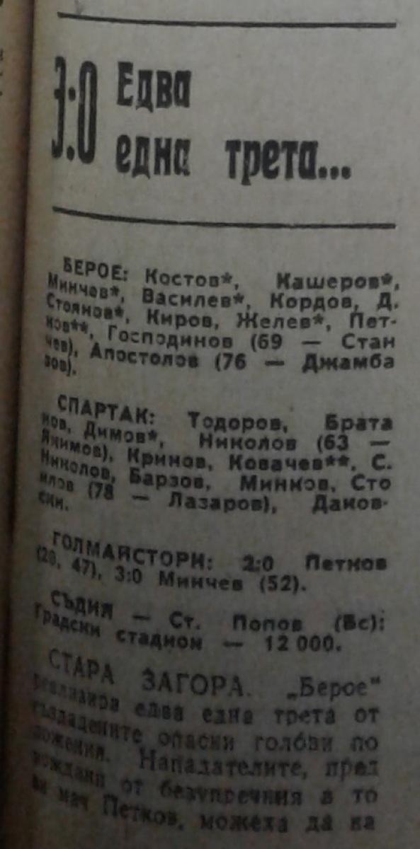 «Берое» Стара-Загора - «Спартак» Плевен - 3:0