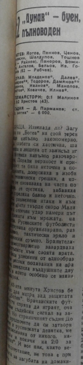 «Ботев» Враца - «Дунав» Русе - 0:2