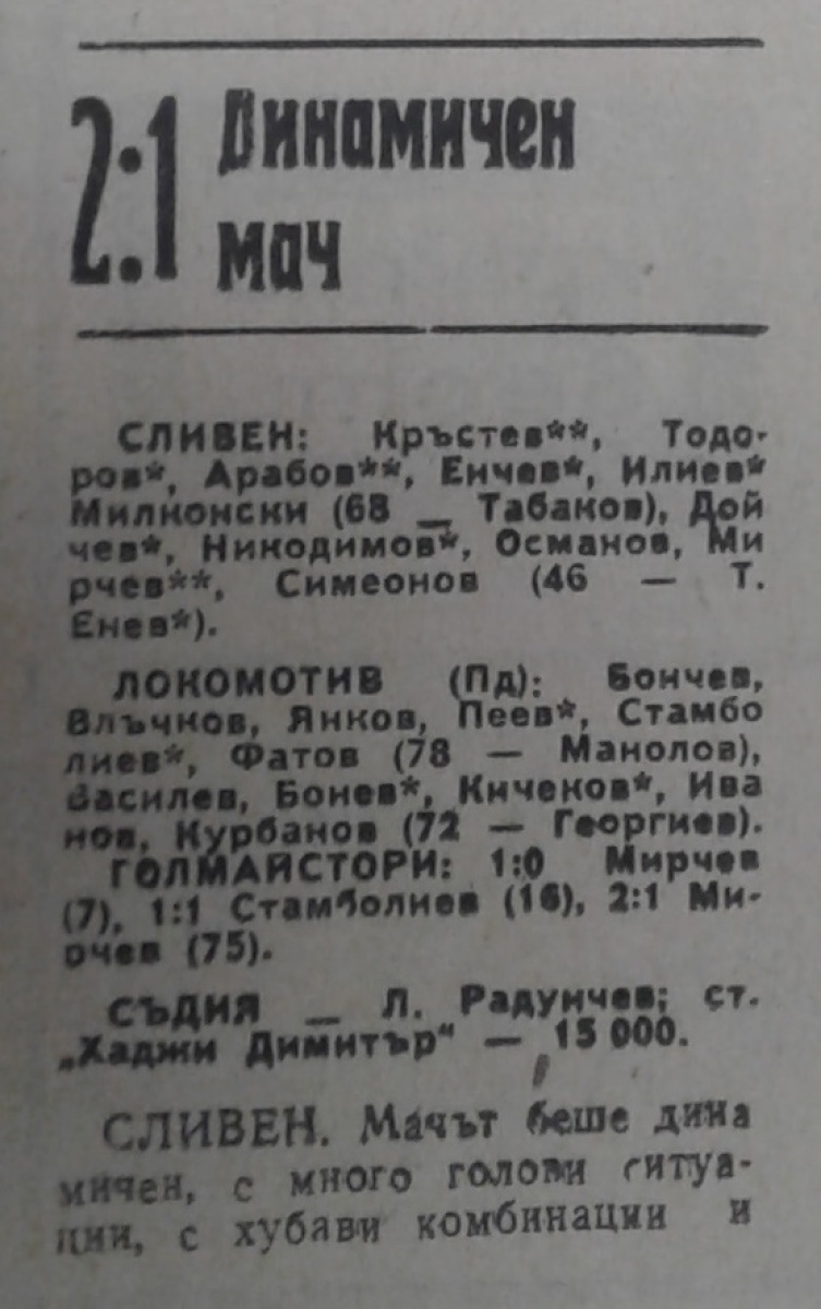 АФД Сливен - «Локомотив» Пловдив - 2:1