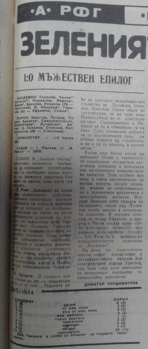 «Академик» София - «Пирин» Благоевград - 1:0