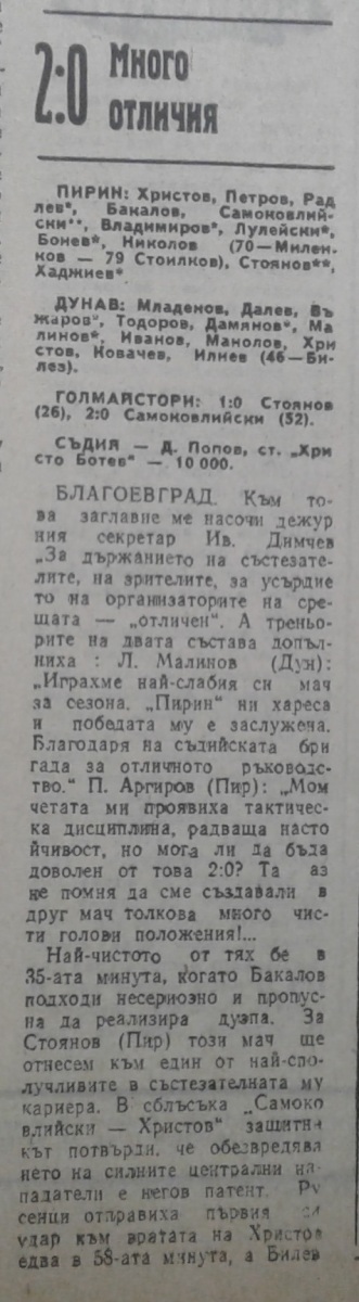 «Пирин» Благоевград - «Дунав» Русе - 2:0