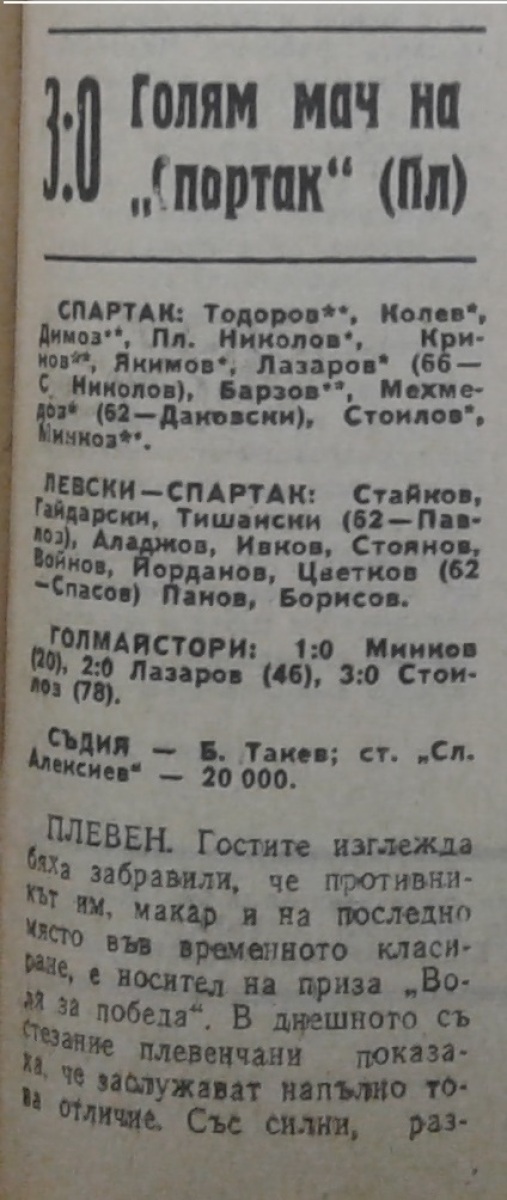 «Спартак» Плевен - «Левски-Спартак» София - 3:0
